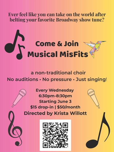 Musical MisFits is a new non-traditional choir: no audition, no extra rehearsals, no performance, just singing!